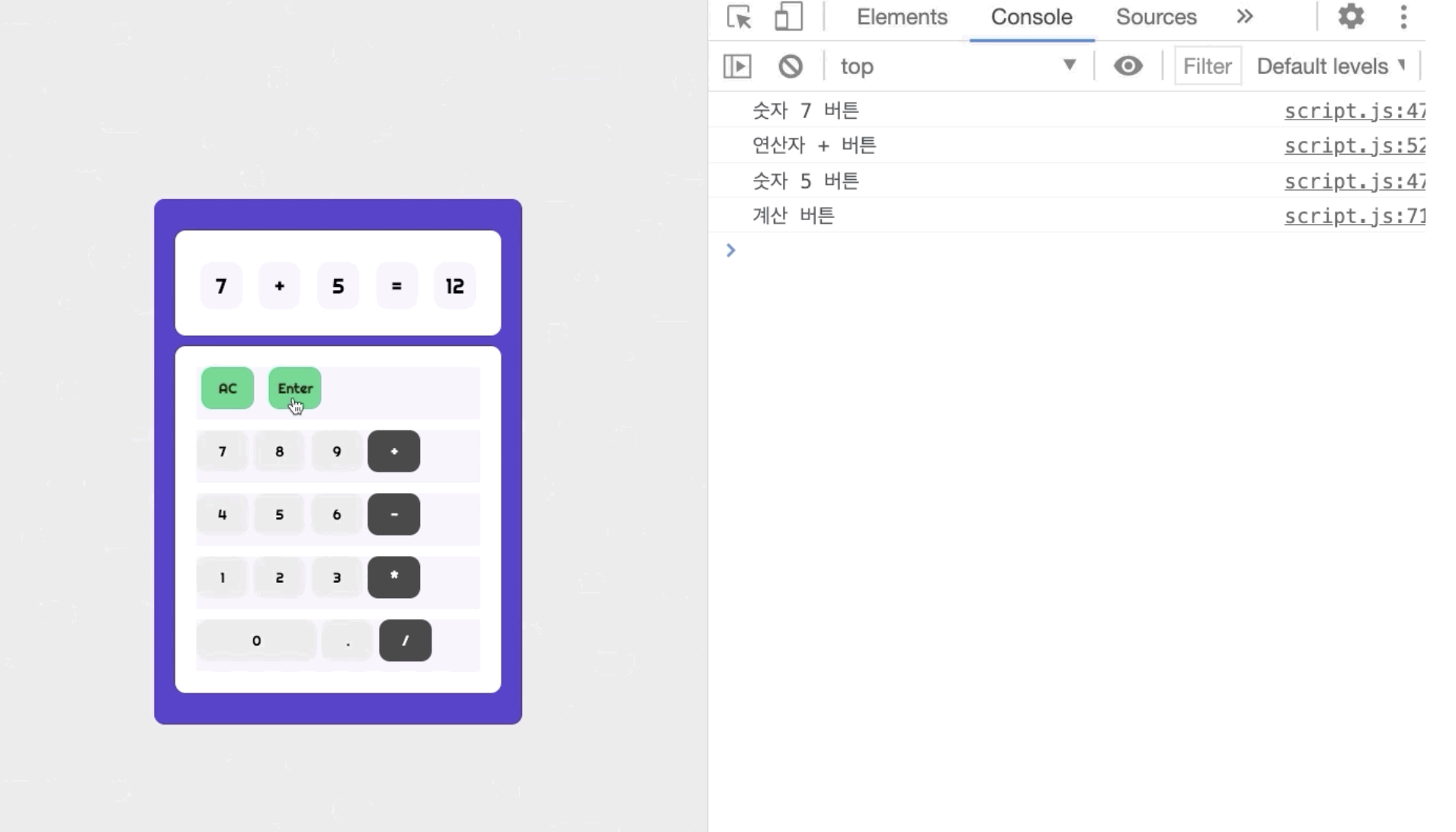 지난번에 HTML과 CSS를 활용해 계산기의 겉모습을 만들어 봤었는데, 오늘은 형태를 갖춘 계산기가 웹에서 작동할 수 있게 구현해보는 것이 과제로 나왔다. 물론 실제 계산기의 기능을 모두 구현하는 것은 아니었지만 간단한 기능을 구현해보는 것도 결코 쉽지 않았다.