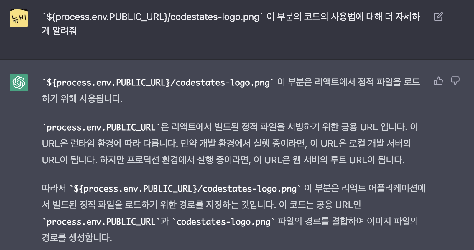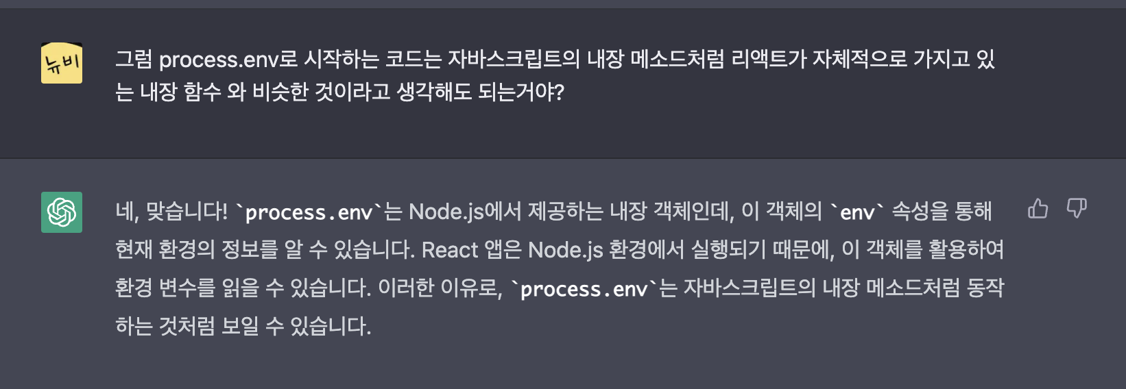 Footer.js 파일의 코드, process.env <- 이 코드를 처음 보았기 때문에 구글에 검색해보고 chatGPT와 담소도 나누었다.